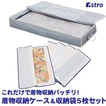 着物収納ケース 収納袋5枚付き 通気性の良い不織布 埃・汚れ防止 浴衣 保管袋 たとう紙の代わり 小物入れ 防虫剤入れ アストロ 173-04