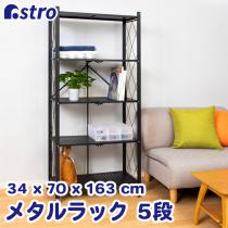特化販売 メタルラック 5段 幅70 奥行34 高さ163cm 黒 キャスター付 折りたたみ式 工具不要 組み立て簡単 収納ラック スチールラック ラ
