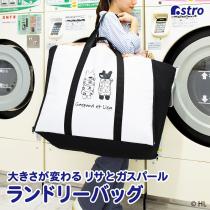 ランドリーバッグ ホワイト×ブラック リサとガスパール 大容量 マチ幅が変わる 洗える 大きい 羽毛布団 収納バッグ 洗濯カゴ ランドリー