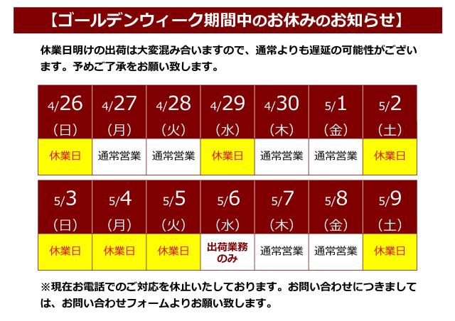 ゴールデンウィークのお知らせ 2026