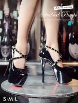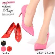 パンプス 靴 レディース キャバ 9cmヒール スタッズ付エナメルパンプス ハイヒール 無地 シンプル 赤 黒 ピンク 靴 パンプス 9cmヒール