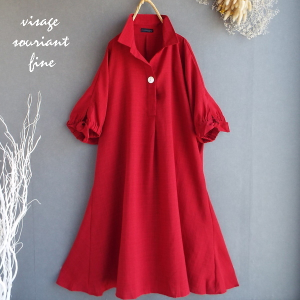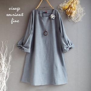 ワンピース レディース チビ襟 スキッパー カラー 半袖 チュニック ナチュラル 体型カバー ロング 30代 40代 50代 60代 s3884