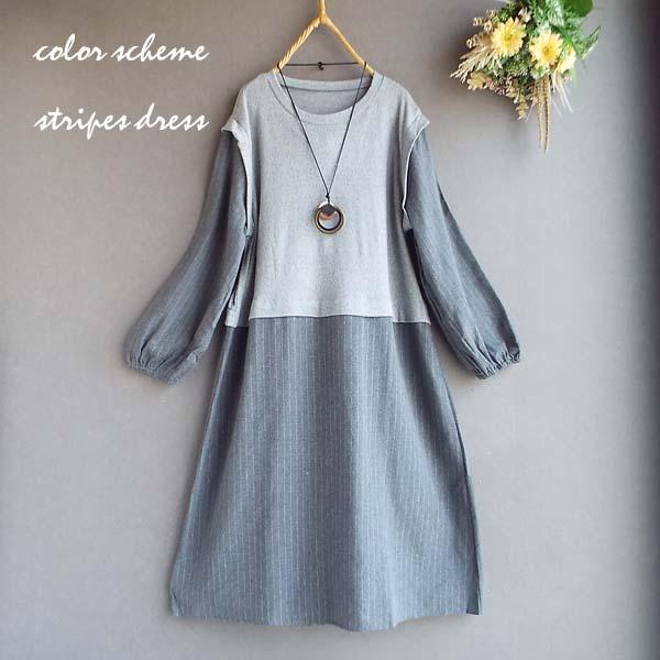 ワンピース レディース ゆったり ストライプ柄 重ね着 レイヤー チュニック トップス Aライン きれいめ 夏 40代 50代 s3012