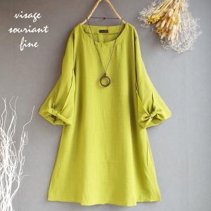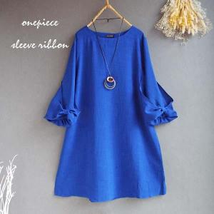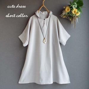 ワンピース レディース チビ襟 スキッパー カラー 半袖 チュニック ナチュラル 体型カバー ロング 30代 40代 50代 60代 s3885