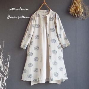シャツワンピース レディース ゆったり 綿麻 サークル プリントワンピース 夏 30代 40代 50代 s3503