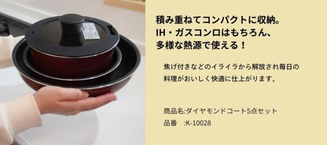 IH対応 K.K ダイヤモンドコート フライパン5点セット K-10028BR こびりつきにくい 取っ手が取れる