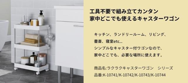 パークレーン ラクラクキャスターワゴン3段 スリム K-10741 収納用品 組立簡単