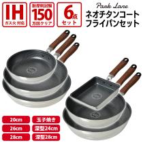 【セット商品】<IH・ガス火対応>K.K ネオ チタンコート フライパンセット 6点セット 玉子焼き フライパン20cm 26cm 28cm 炒め鍋24cm 28