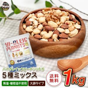 アメリカ産ピーナッツ入り5種ミックスナッツ 1kg ハイオレイックピーナッツ アーモンド 生くるみ カシューナッツ マカダミアナッツ 落花
