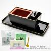 お焼香フルセット 072 お盆付き焼香炉 灰 抹香 香炭 灰ならし お焼香用 香炉 黒塗り無地×金フチ ブラック 法要 仏具