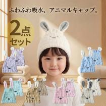【春待ちセール開催中】タオルキャップ 2個セット 子供 スイミング 女の子 キッズ うさぎ くま ヘアキャップ プール 2枚 2個 セット ドラ