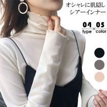 ポイント超超祭 <オプション2点目から780円でゲット!>短納期 シアートップス フリル カットソー レディース インナー シャツ ハイネッ