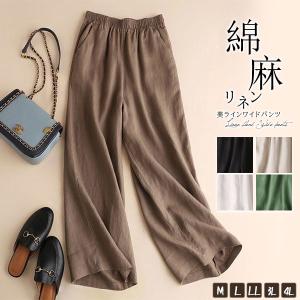 綿麻パンツ レディース ボトムス 接触冷感 ワイドパンツ 大きいサイズ パンツ 綿麻風 リネンパンツ コットン シンプル おしゃれ 着痩せ