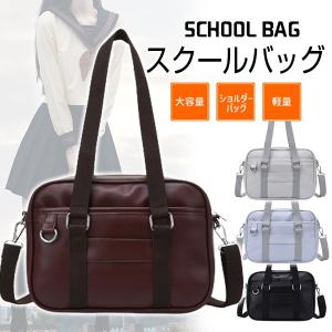 値下げ スクールバッグ 合皮 大きめサイズ 学生かばん 手提げ鞄 通学バッグ サブバッグ 軽量 ブラック肩掛け A4 高校生 中学生 肩掛け 丈