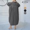 プリーツワンピース ワンピース レディース ロングワンピース プリーツ カジュアル ドロップショルダー シンプル お洒落 細見え ふんわり
