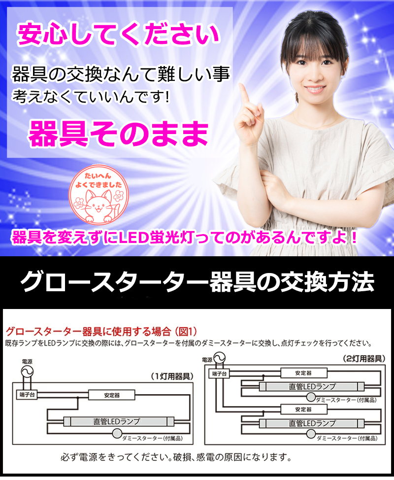 LED蛍光灯グロースタータ器具専用
