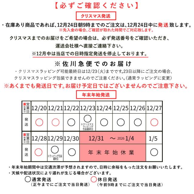 配達希望日の指定は出来かねますのでご了承ください。