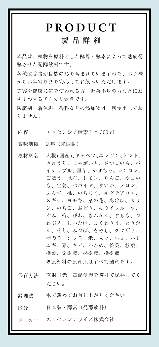【医師オススメ】エッセンシア酵素300m (1本) 100%無添加 飲みやすい 酵素ドリンク ファスティング 置き換えダイエット