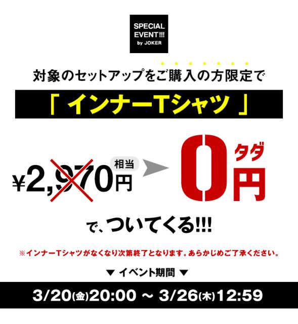 対象セットアップの購入で、【インナーTシャツ】がついてくる!