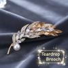 送料無料 1000円ポッキリ ブローチ パール ティアードロップ リーフ ラペルピン コサージュ バッジ 葉 モチーフ 羽根 クリスタル ガラス