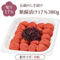 しそ梅 紫蘇と塩だけで漬け込みました 特選 南高梅 紫蘇漬け17% ご家庭用エコパック380g 中粒サイズ 国産 梅干し 昔ながら しそ梅干し