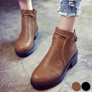 ブーツ ショートブーツ レディース シューズ ローヒール ステッチ 春ブーツ (送料無料) ^bo-419^