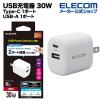 【在庫処分・お買い得!】 エレコム AC充電器 USB PD 30W Type-C 1ポート USB-A 1ポート スイングプラグ ホワイト┃MPA-ACCP30WH