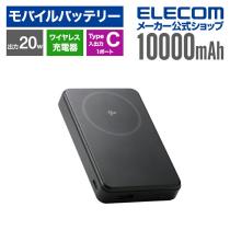 エレコム モバイルバッテリー Qi2対応 ワイヤレス 充電器 Type-C 入出力×1 USB-A×1 10000mAh 20W リチウムイオン電池 ブラック