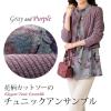 アンサンブル チュニック カーディガン セット パープル グレー レディース 花柄カットソー チュニックアンサンブル 婦人服 ミセス シニ