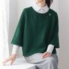 ふくれジャカードプルオーバー グリーン カットソー クルーネック 七分袖 重ね着 レディース 婦人服 ミセス シニア 女性 大人 緑 重ね着