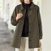 キルト風ジャカードコート モスグリーン 洗える ハーフコート Aライン レディース 婦人服 ミセス シニア 女性 大人 襟付き コート 緑 ア