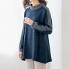 肩ライン配色チュニック 杢ネイビー×グレー ハイネック 裏起毛 チュニック レディース 婦人服 ミセス シニア 女性 大人 カットソー 体型