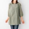 ダブルガーゼギャザーチュニック 全2色 チュニック ブラウス コットン バンドカラー 七分袖 レディース 婦人服 ミセス シニア 女性 グレ