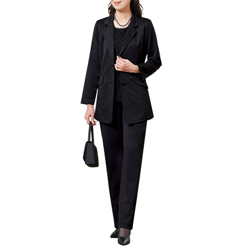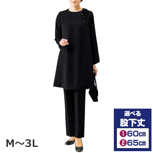 喪服 礼服 ブラックフォーマル パンツスーツ レディース シニア フォーマルスーツ チュニックパンツスーツ ブラック M L LL 3L 選べる股
