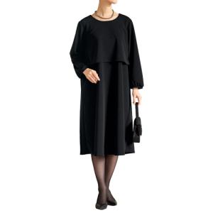 ワンピース レディース 日本製 らくらくフォーマルワンピース ブラック ひざ丈 婦人服 ミセス シニア 女性 黒 ブラックフォーマル シンプ