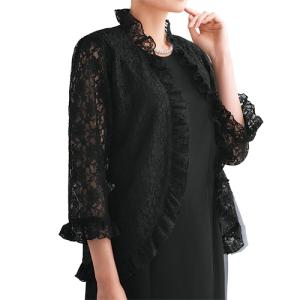 ボレロ 七分袖 カーディガン 喪服 礼服 礼装 日本製 フォーマル総レースボレロ ブラックフォーマル フリル レース レディース 婦人服 ミ