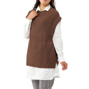 sale クルーネックニットベスト 全5色 トップス ベスト 畦編みニット 丸首 ブラック グレー ブラウン ベージュ レディース 婦人服 ミセ