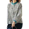 花柄とグレーの色合いが優しい印象の麻混ブラウス