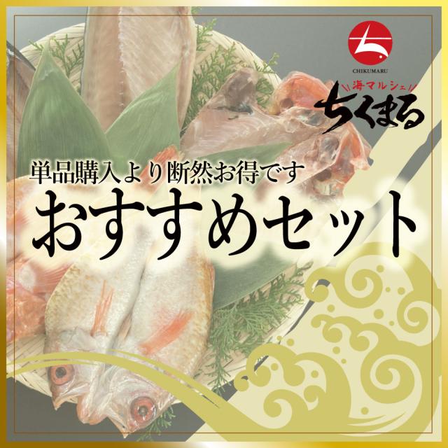 【海マルシェちくまる】ご自宅用や贈答用ににいろんな種類の干物をお試しいただけるよう 単品購入より断然お得なセットをご用意いたしました。当店の商品は贈答用にそのままお送りいただける専用の化粧箱にお入れしております。