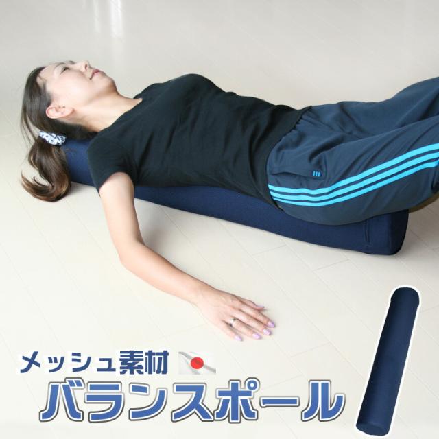 寝転んでテレビなどを観ながら背中や腰を伸ばせるメッシュ素材のストレッチ用ポール。