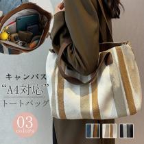 ショルダーバッグ トートバッグ エコバッグ キャンバス a4 レディース 通勤 大きめ ファスナー付き A4対応 ストライプ柄 通勤 バッグ カ