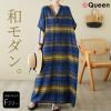 大きいサイズ レディース 和柄ワンピース マキシワンピ オーバーサイズ 半袖ポンチョ 夏 (75841)