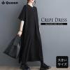 大きいサイズ レディース ロングワンピース 黒ワンピ 無地 五分袖 クレープ ドロップショルダー 夏 (549365)
