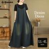 デニムサロペットスカート 大きいサイズ デニムジャンパースカート デニムワンピ レディース マキシ LL 3L 4L (555596)