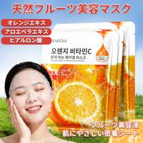 [12枚セット]天然フルーツフェイスマスク 個包装、保湿パック 個包装【オレンジエキス】シートパック、ビタミン パック、フェイスパック