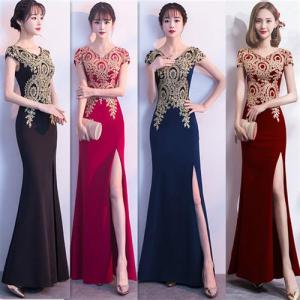 ロングドレス キャバドレス キャバワンピ 胸元金糸刺繍デザイン エレガントなストレッチロングドレス パーティードレス