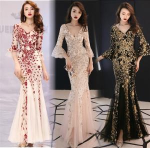 ロングドレス キャバドレス キャバワンピ 妖精風デザイン 煌めくスパンコール装飾にエレガントなメッシュレース重ねストレッチロング