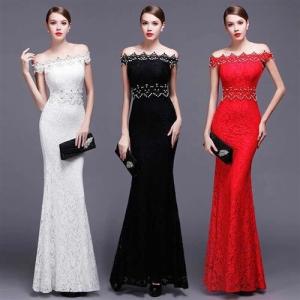 ロングドレス キャバドレス キャバワンピ 胸元ビジュ&パールビーズ装飾 総レースデザイン肩魅せロングドレス