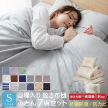 布団セット 7点セット シングル 中綿増量1.6kg 固綿入り 敷き布団 掛け布団 枕 掛け布団カバー 敷き布団カバー 収納袋付き 抗菌 防臭 防