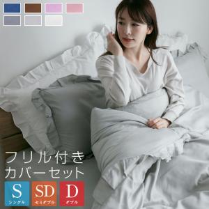 布団カバー フリル カバー 3点セット 4点セット シングル セミダブル ダブル 敷き布団 ベッド 兼用 選べる7カラー 布団カバー 枕カバー 2